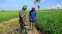 Antisipasi Hama, Babinsa Dampingi Petani Semprot Tanaman Padi