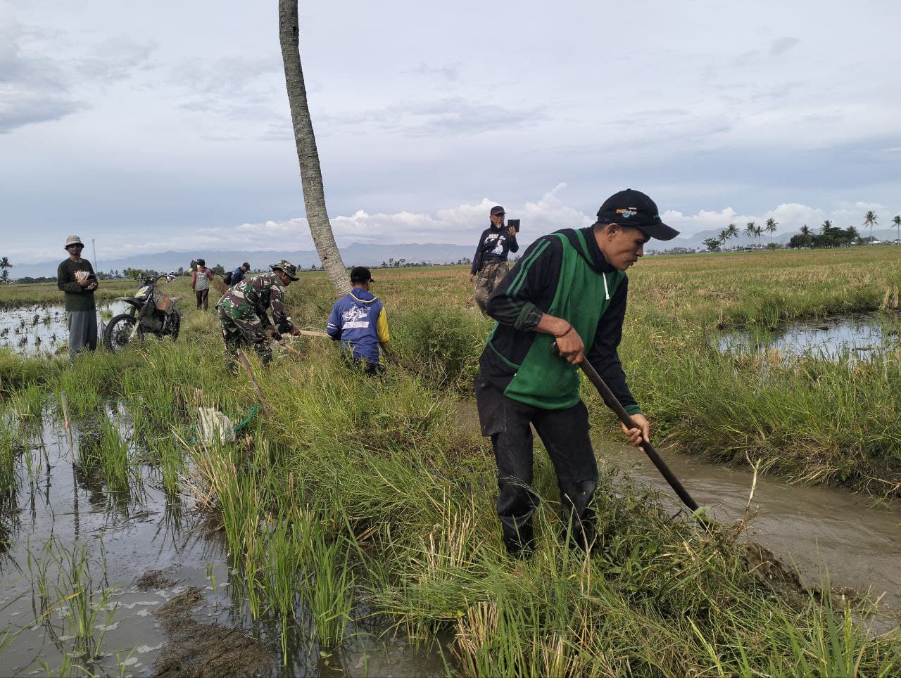 Serka Usman Sulfiki(Babinsa) dalam kesempatan tersebut menyampaikan bahwa saat ini sudah memasuki tahap persiapan dan turun sawah, Untuk itu segala kendala yang menghambat para petani dalam pekerjaan bertani harus diantisipasi dengan baik salah satunya membersihkan saluran irigasi ini.