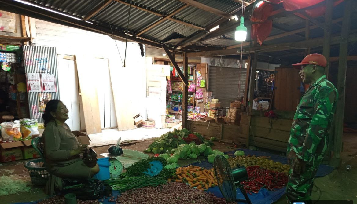 Dalam kunjungannya, Sertu Bustan berdialog langsung dengan para pedagang dan pembeli untuk mengecek secara langsung harga-harga komoditas utama, seperti beras, minyak goreng, gula, telur, dan cabai.