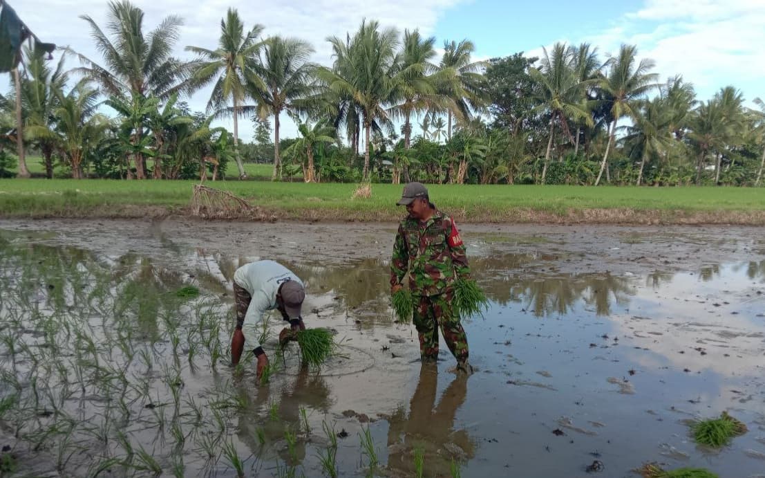 Wujud nyata dukungan TNI, khususnya Babinsa, dalam mendukung ketahanan pangan terlihat saat mereka terjun langsung membantu petani di desa binaannya, khususnya dalam menyiapkan dan menanam padi. Pada kesempatan ini, Babinsa Desa Padangloang Koramil 1420-05/Dua Pitue Serka Jafar Musa turut berpartisipasi dalam proses penanaman padi di Dusun 1 Desa Padangloang Kecamatan Dua Pitue Kabupaten Sidrap, Rabu (28/05/2025)