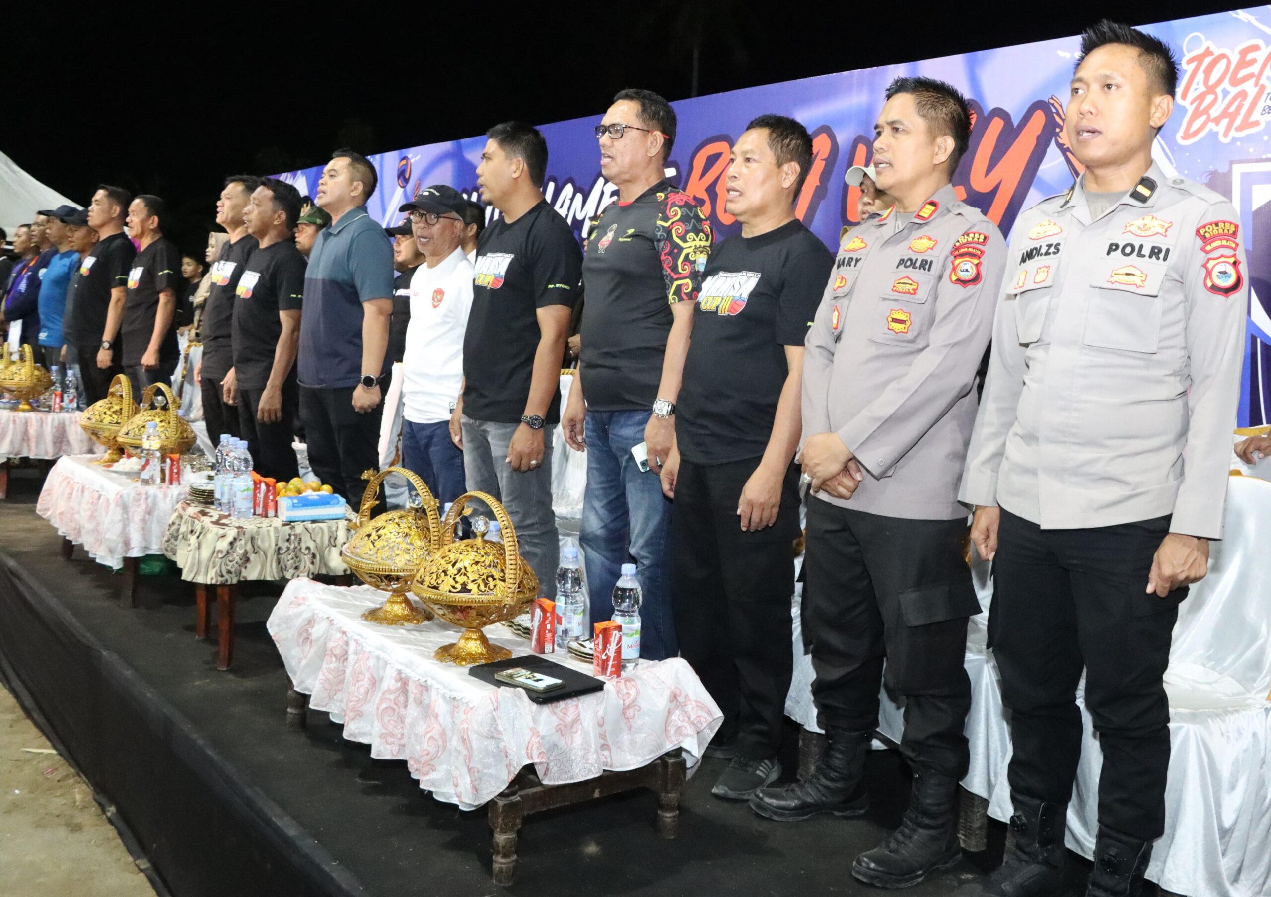 Sidrap – Kapolres Sidrap Akbp Fantry Taherong menghadiri pembukaan open tournament bola volly bertajuk Manisa Cup III tahun 2025 di lapangan Rethander Kelurahan Manisa Kecamatan Baranti Kabupaten Sidrap, Rabu (1/10/25) malam