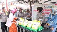 Stabilkan Harga Pangan, Polwan Polres Sidrap Ikut Salurkan Beras ke Warga