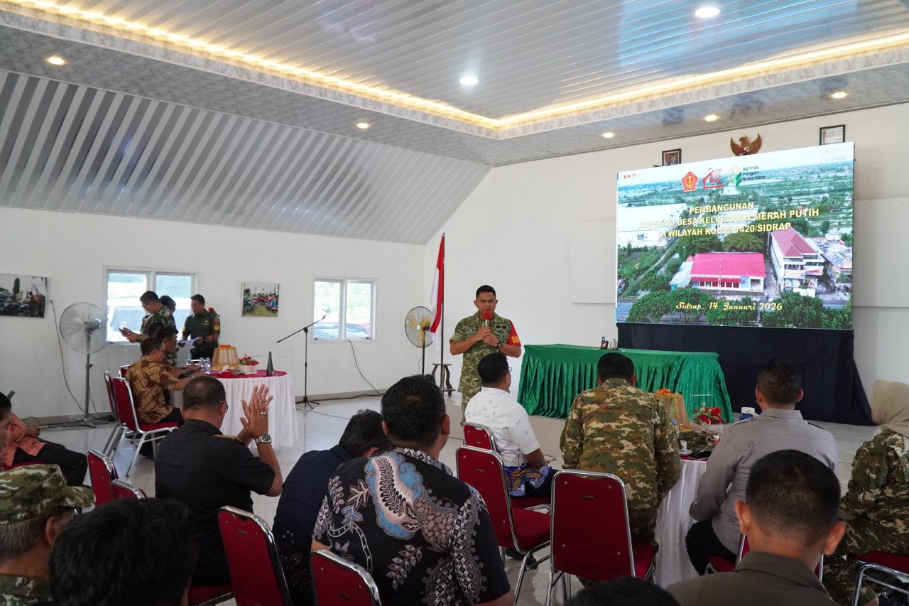 Sidrap, 15 Januari 2026 – Dandim 1420/Sidrap Letkol Inf Andi Zulhakim Asdar, S.H.I., M.H.I., melaksanakan kegiatan sosialisasi Pembangunan Koperasi Desa/Kelurahan Merah Putih (KDKMP) dan Pembangunan Batalyon Teritorial kepada Camat, Lurah, dan Kepala Desa se-Kabupaten Sidrap. Kegiatan berlangsung di Aula Makodim 1420/Sidrap, Jl. Jend. Sudirman, Kel. Majjelling Wattang, Kec. Maritengngae.