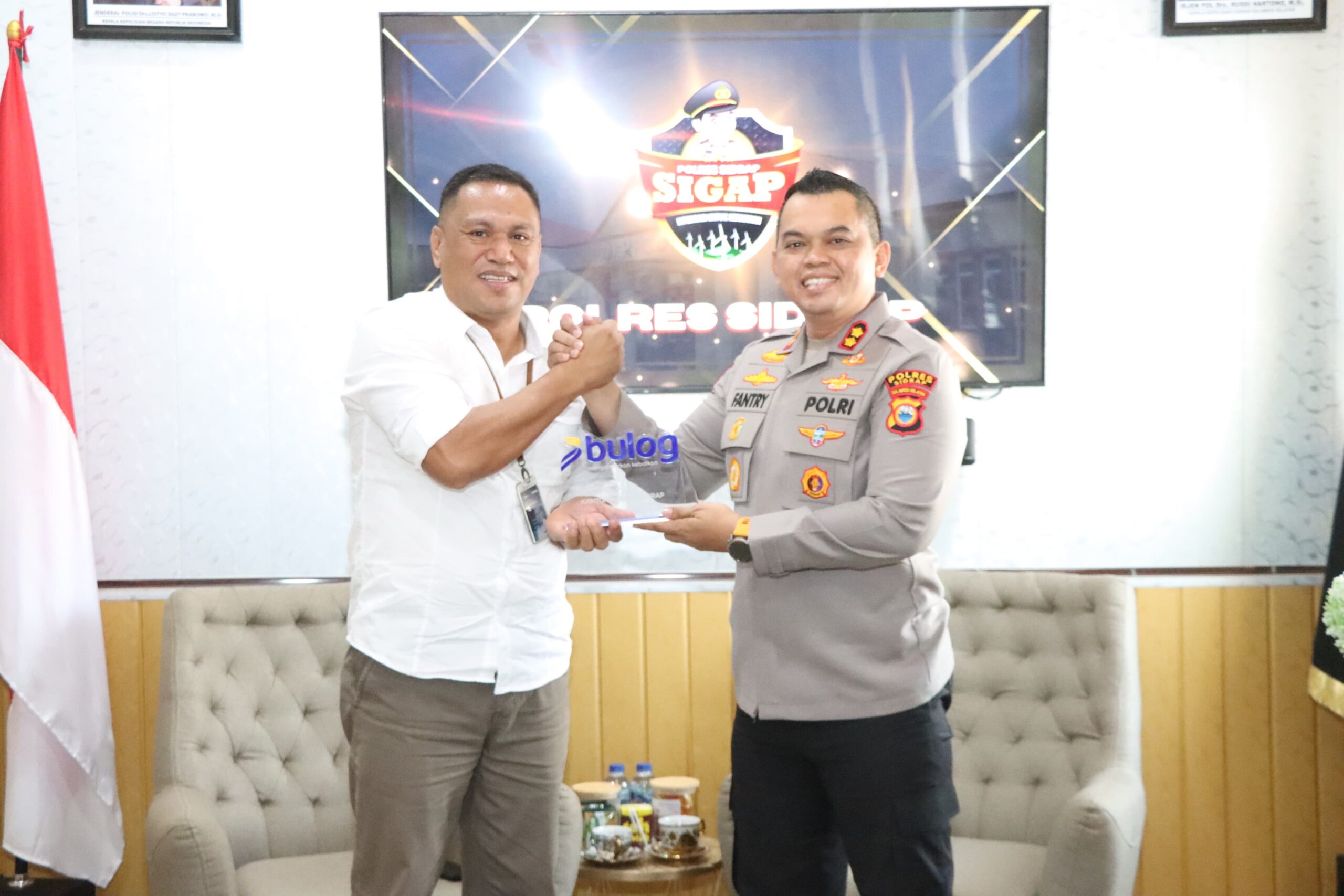 Sidrap – Kepala Kepolisian Resor Sidrap Akbp Fantry Taherong menerima kunjungan audience dari Pimpinan Perum Bulog Cabang Sidrap Simon Melki Sedek Lakapu di ruang kerja Kapores Sidrap, Jalan Bau Massepe Kecamatan Maritengngae Kabupaten Sidrap, Selasa (12/8/25) Siang