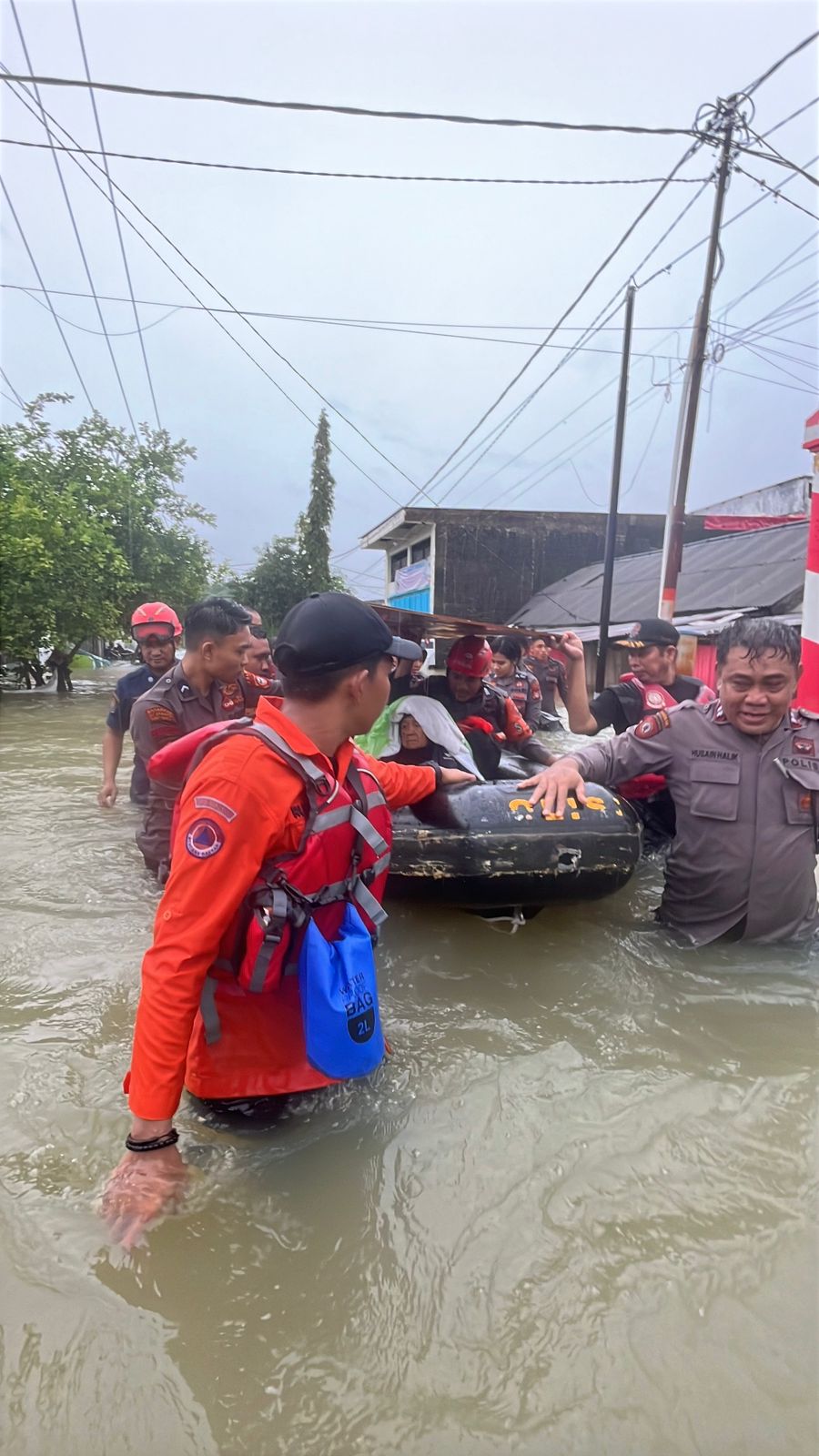 Upaya pertama dilakukan di mana tim berhasil mengevakuasi balita dari area banjir di Perumnas Kodam III dan Jalan Buka Mata Raya, Kelurahan Katimbang.