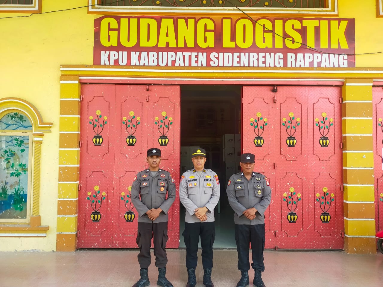 Saat dikonfirmasi Kapolres Sidrap melalui Kasi Humas AKP Suwandi, S.Sos menyatakan bahwa pihaknya telah menempatkan Personel di sekitar Gudang Logistik sejak ditetapkannya oleh pihak KPU dengan pengamanan dilakukan terhadap fisik gudang, lalu lintas masyarakat sekitar dan pemasangan CCTV yang merupakan hasil kolaborasi dengan KPU