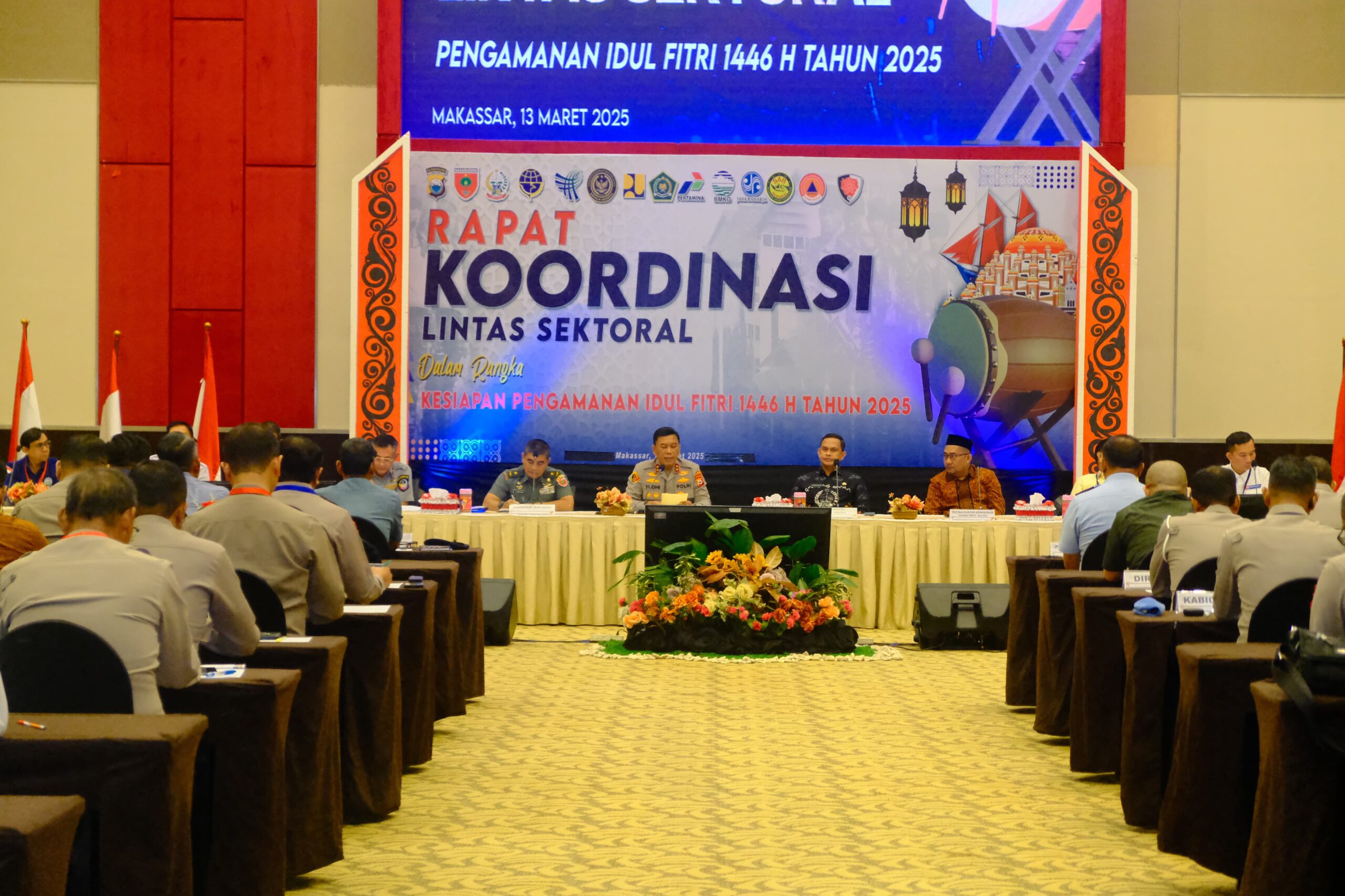 Kapolda Sulawesi Selatan, Irjen Pol. Yudhiawan S.H., S.I.K., M.H., M.Si., secara resmi membuka kegiatan Rapat Koordinasi (Rakor) Lintas Sektoral Tahun 2025 dalam rangka kesiapan Operasi Ketupat 2025. Acara ini berlangsung di Hotel Dalton Makassar pada Kamis (13/03/25) dan turut dihadiri oleh Wakapolda Sulsel, Brigjen Pol Nasri, S.I.K., M.H., serta Pejabat Utama Polda Sulsel. Selain itu, hadir pula perwakilan Forum Koordinasi Pimpinan Daerah (Forkopimda) Provinsi Sulsel.