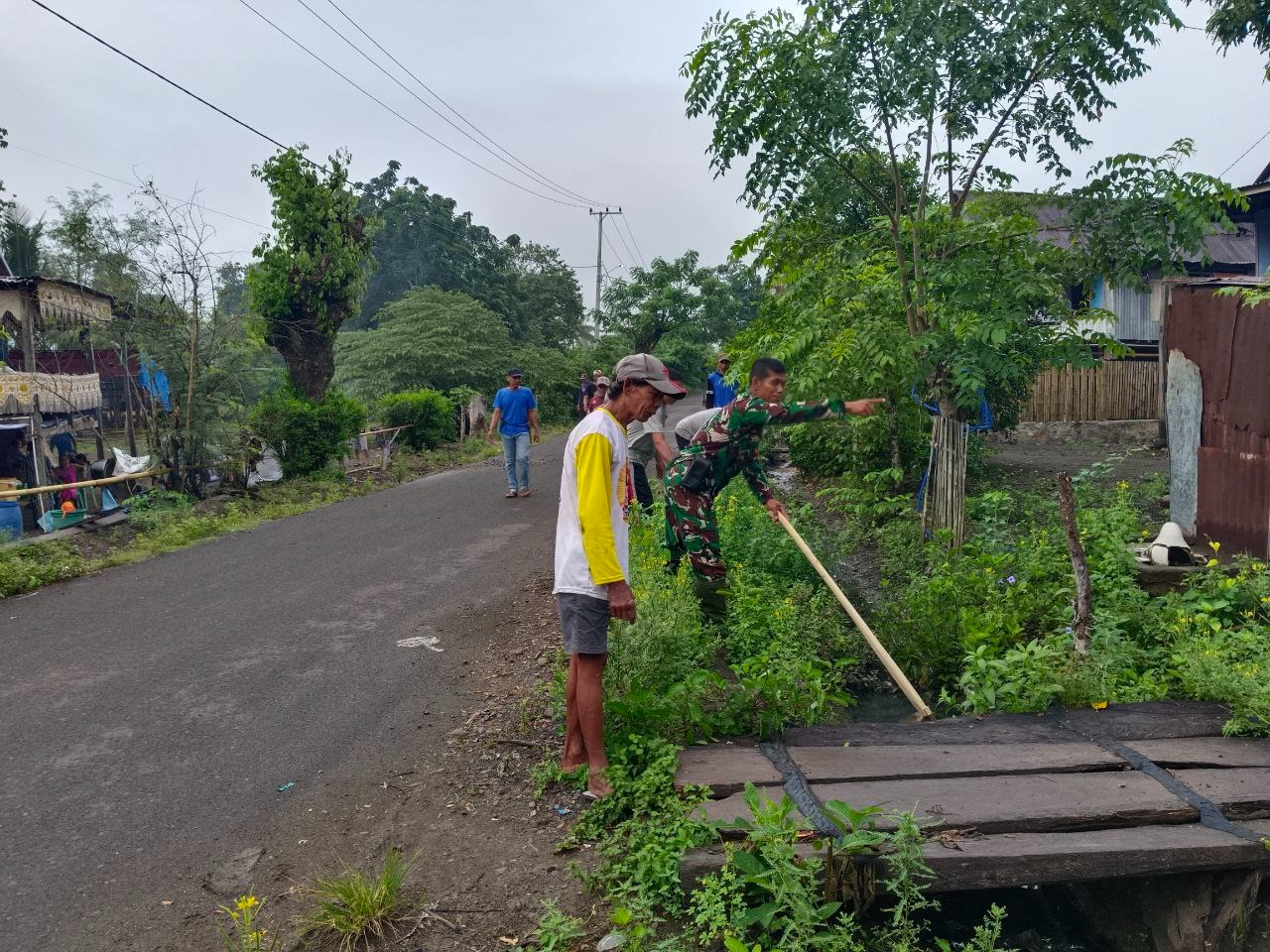 Sidrap – Anggota Koramil 02/Tellu Limpoe, Serka Anwar, bersama masyarakat Kelurahan Pajalele, Kecamatan Tellu Limpoe, melaksanakan kegiatan karya bakti dengan sasaran pembersihan sampah dan saluran air di Lingkungan II Kelurahan Pajalele, Kabupaten Sidrap, Selasa (02/09/25).