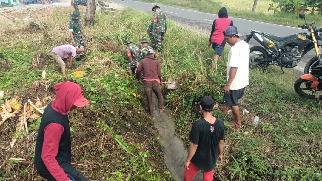 Koramil 1420-03/Maritengngae Gelar Karya Bhakti Bersihkan Saluran air