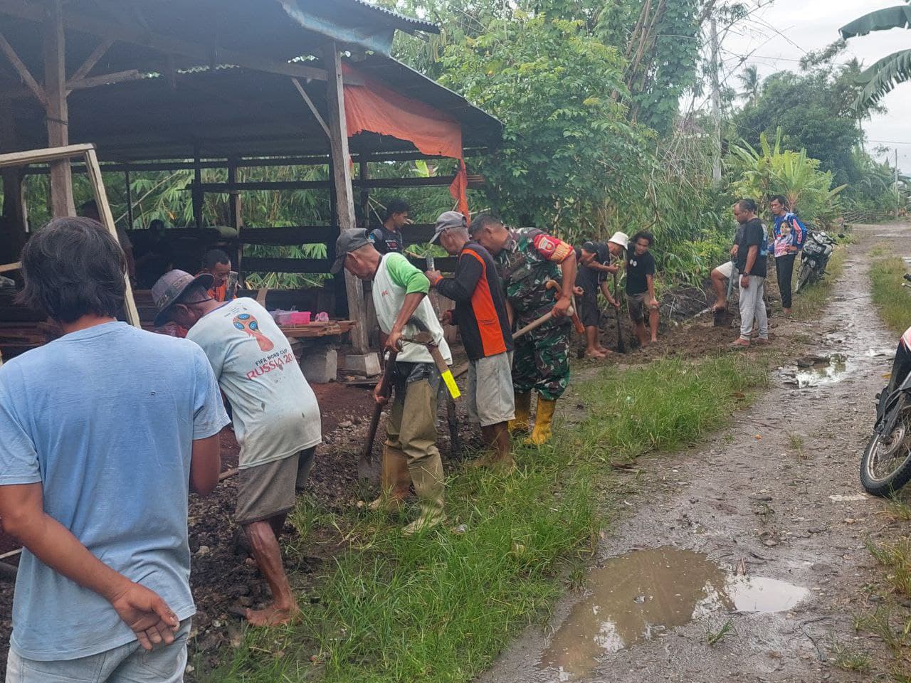 TNI dari Koramil 07 Baranti, Personil Bhabinkamtibmas serta Mahasiswa bersatu bahu membahu dalam kegiatan karya Bhakti tersebut.