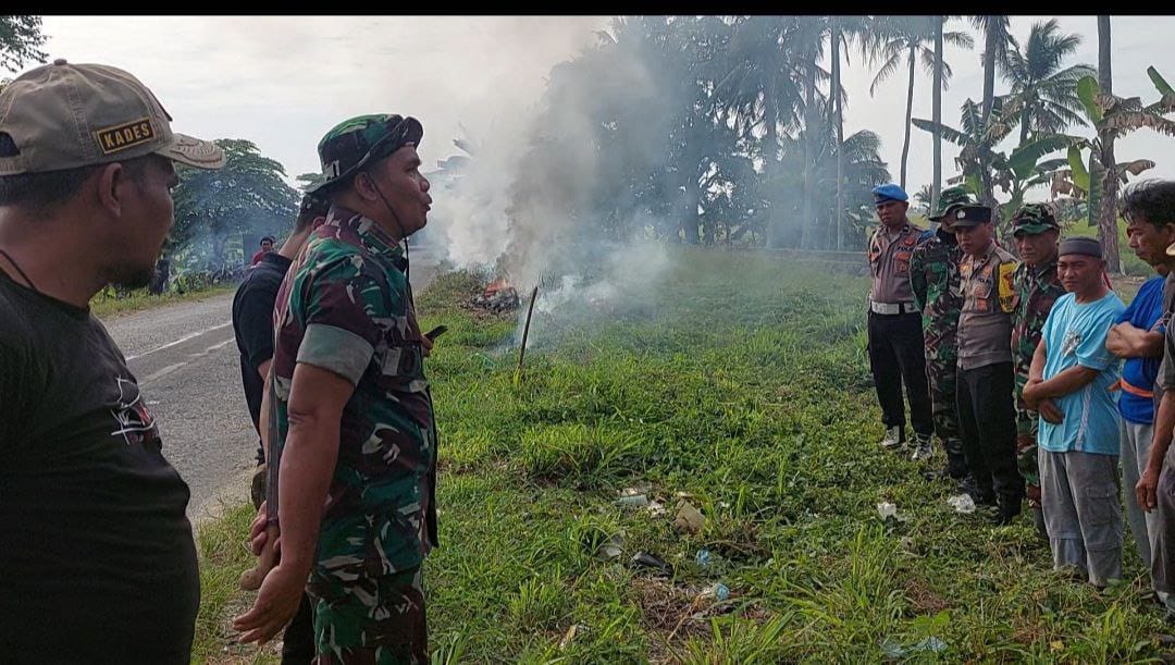Koramil 1420-07/Baranti Bersama Warga Karya Bhakti Bersihkan Tumpukan Sampah di bahu Jalan Poros Sidrap-Pinrang