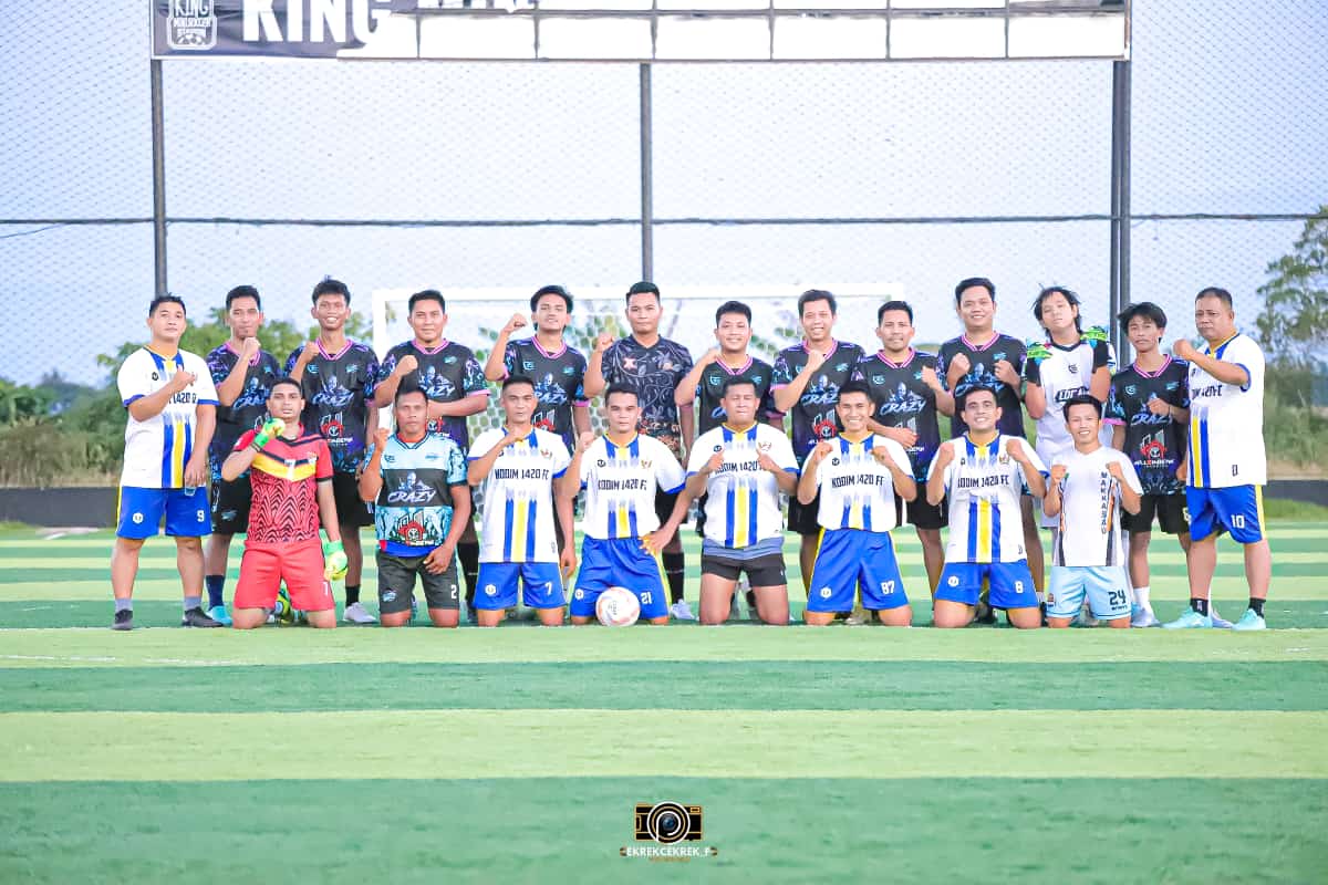 Sidrap – Tim Sepak bola Kodim 1420/Sidrap menggelar laga persahabatan mini soccer melawan Komunitas kepemudaan GMP Fc bertempat di lapangan King Mini Soccer Pangkajene Sidrap, Selasa (6/1/2025).