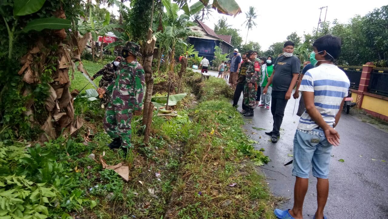 SIDRAP- Sikap peduli terhadap kebersihan lingkungan ditunjukkan oleh TNI dari Koramil 07/Baranti, Peltu Sahabuddin (Batituud Ramil 07/Baranti) bersama Rekan Babinsa mengajak warganya bersih-bersih di dusun 1 Passeno Desa Passeno Kecamatan Baranti Kabupaten Sidrap.