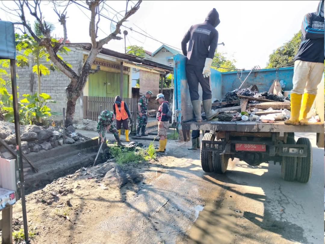 Terlihat begitu kompak Personel Koramil-06/Panca Rijang bersama warga berjibaku dan penuh semangat kerja bakti membersihkan saluran air agar tidak tersumbat oleh sampah dan lumpur agar air dapat mengalir dengan lancar saat hujan.