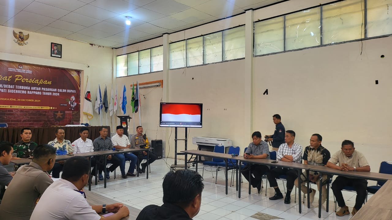 Rapat ini bertujuan untuk membahas kesiapan pelaksanaan debat publik atau debat terbuka bagi pasangan calon (Paslon) Bupati dan Wakil Bupati dalam konteks Pemilihan Kepala Daerah (Pilkada) Sidrap tahun 2024.