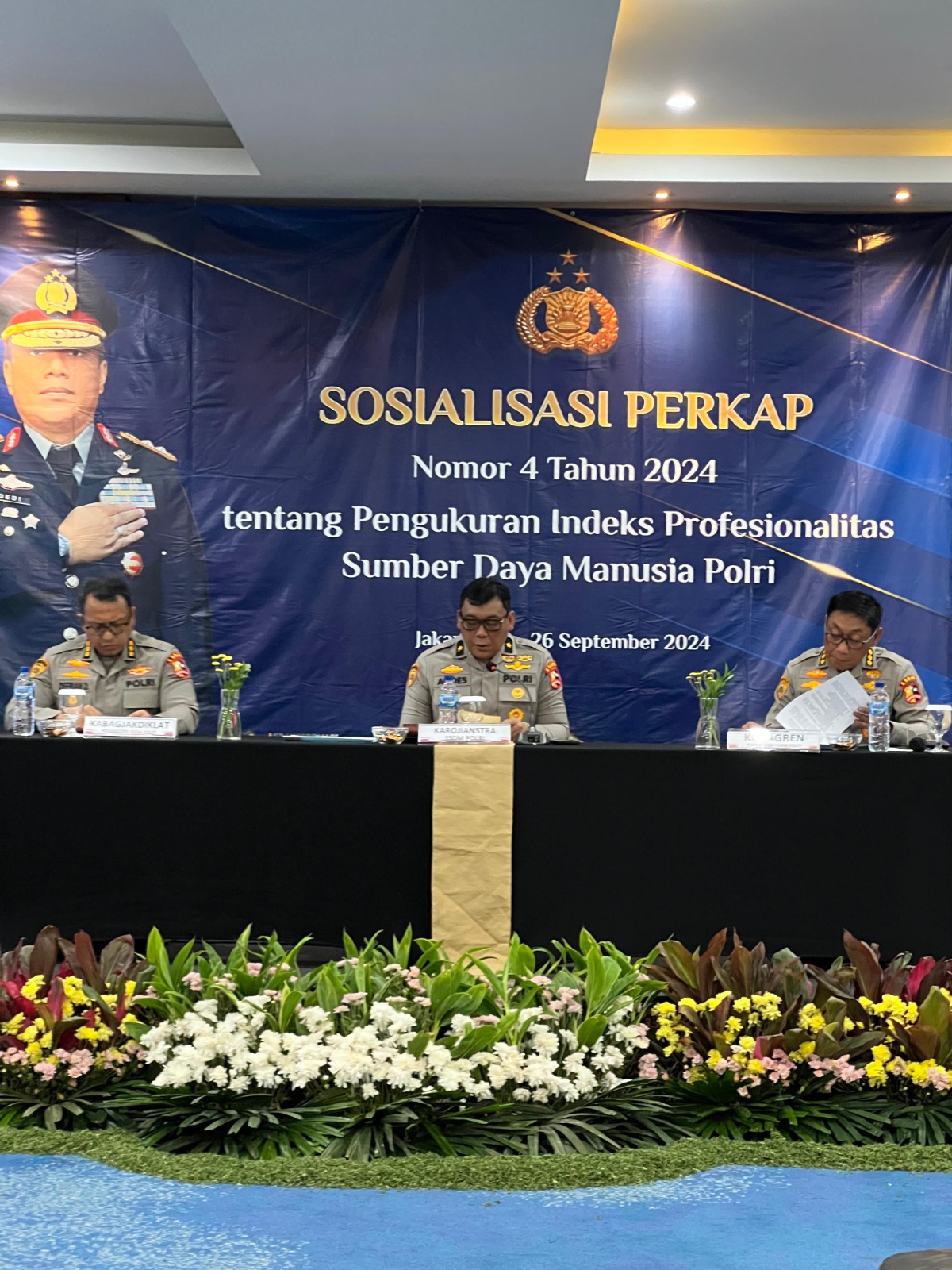 Kegiatan Sosialisasi di gelar selama 2 hari dimulai Rabu sampai Kamis 25-26 September 2024 bertempat di Hotel Verenda Pakubuwono Jakarta Selatan yang dihadiri secara offline seluruh perwakilan Polda dan secara daring seluruh operator SDM Polri, Rabu (25/9/2024).