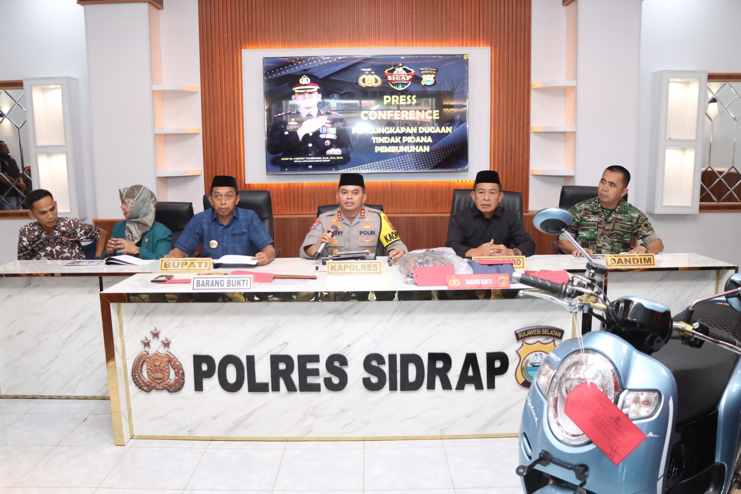 Kapolres Sidrap AKBP Fantry Taherong didampingi Bupati Sidrap, Ketua DPRD dan Forkopimda saat Conference Pers di ruang Rupatama Polres Sidrap, Jumat (28/03/25), menjelaskan bahwa anak yang berhadapan hukum, berinisial AP (17), sebelumnya bekerja di tempat usaha milik korban (Musik Gambus).