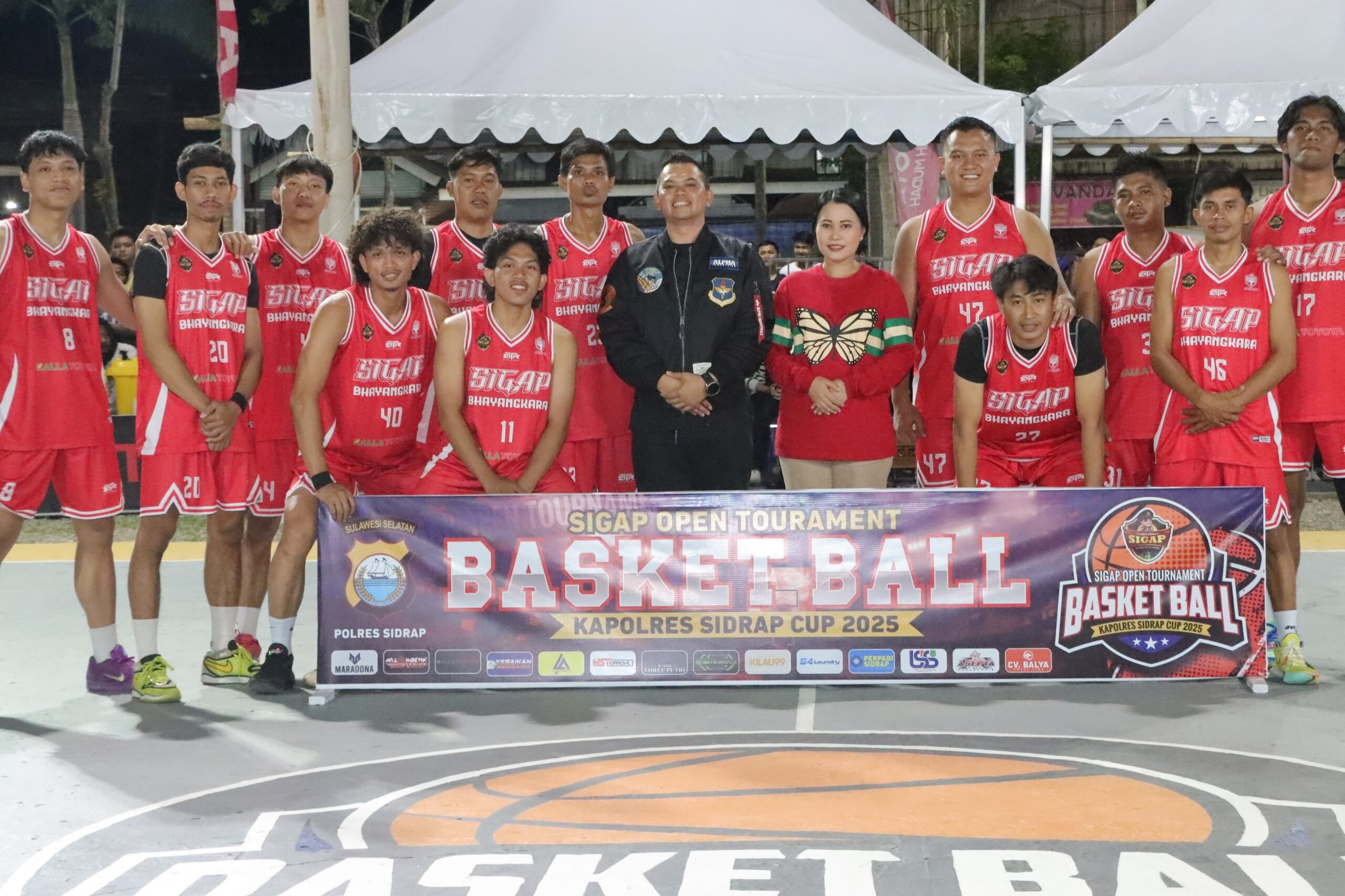 Kapolres Sidrap Akbp Fantry Taherong secara resmi menutup turnament basketball bertajuk “Sigap Open Tournament Basketball Kapolres Sidrap Cup 2025” yang berlangsung di lapangan Usman Isa Kabupaten Sidrap, Minggu (19/10/25) dinihari