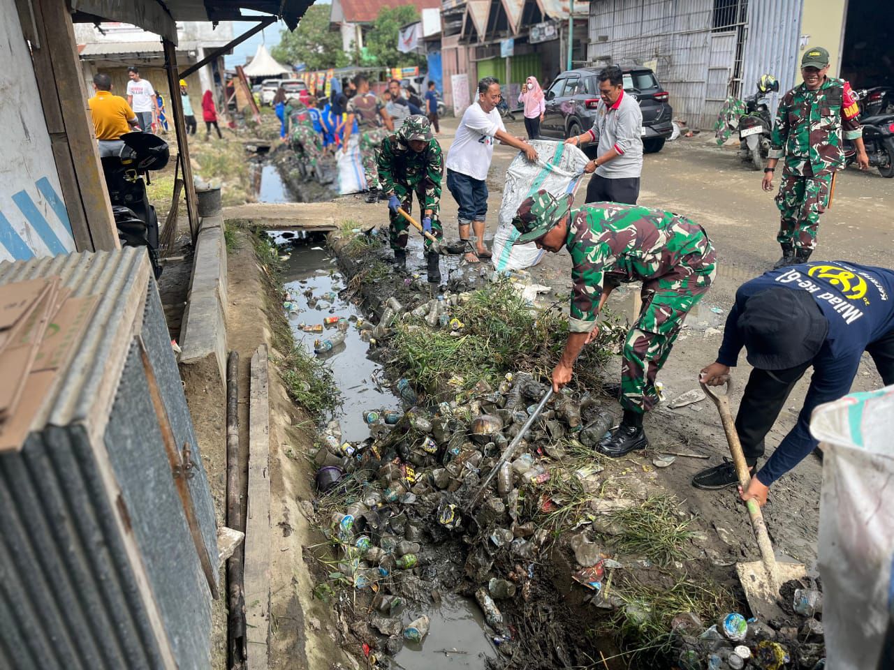 SIDRAP– Ws.Danramil 1420-05/Dua Pitue Letda Inf.Murjalil Bersama Sekcam dan masyarakat melaksanakan karya bakti membersihkan selokan dan tepi jalan di pasar sentral Tanru Tedong Kecamatan Dua Pitue Kabupaten Sidrap, Kamis(26/12/2024).